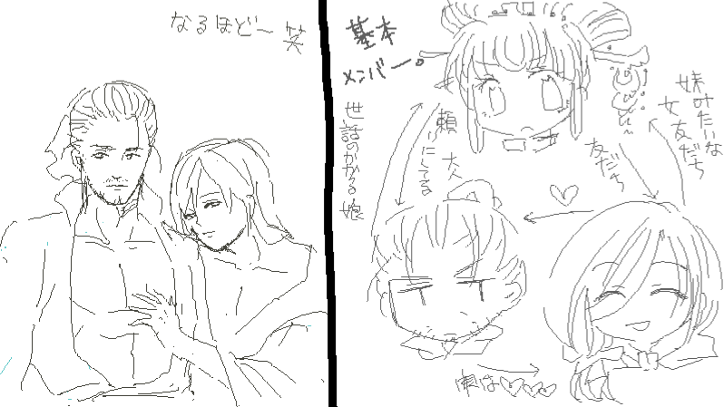 前に飲みの席で大体の事は語っていたので、相関図見てから早速友人が落書き。